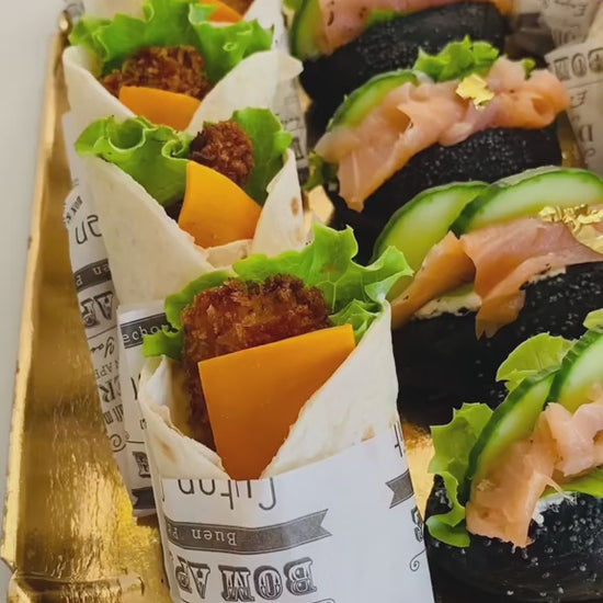 Elevate your reception with our carefully curated Signature Selection, a delicate assortment of 8 premium appetizers designed to impress your guests from the very first bite. This gourmet pack combines French-inspired elegance with Mediterranean flavors, perfect for villa parties, celebrations, and special events on the Costa Blanca.